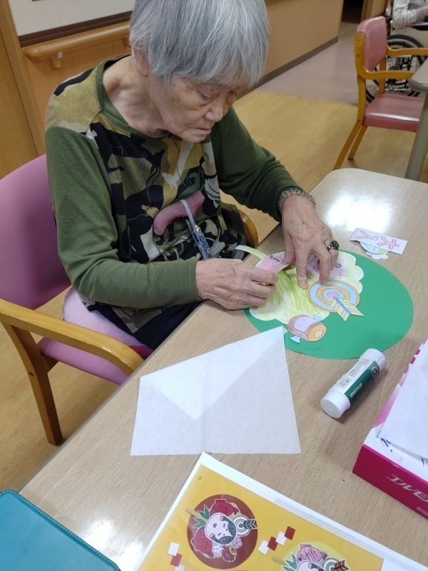 今年の壁紙工作は、酉の市の熊手を作成いただきました。