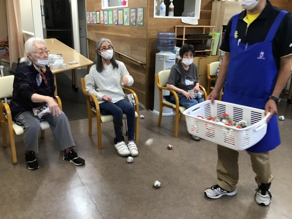 みなさん集中して動いてしまうカゴを目掛けて投げていきます!