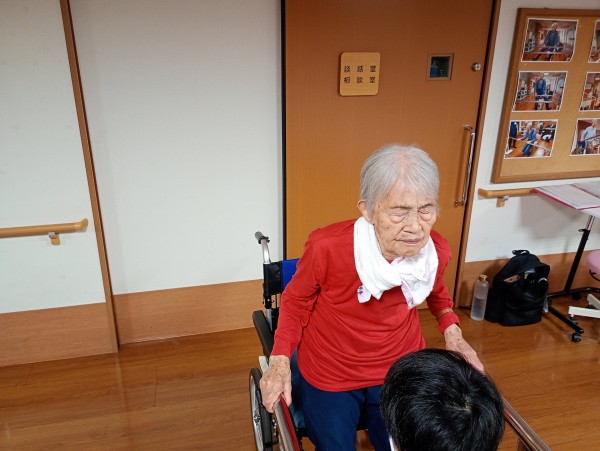 歩行器を利用しゆっくりと歩かれています