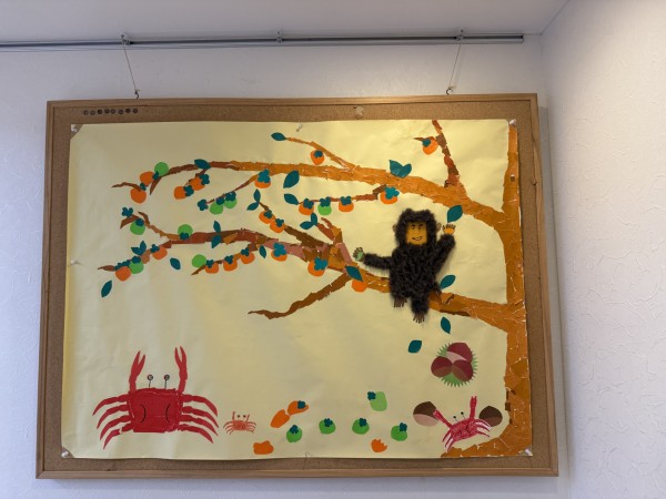 今回は昔話でおなじみの「さるかに合戦」をテーマに作成しました(^^♪
