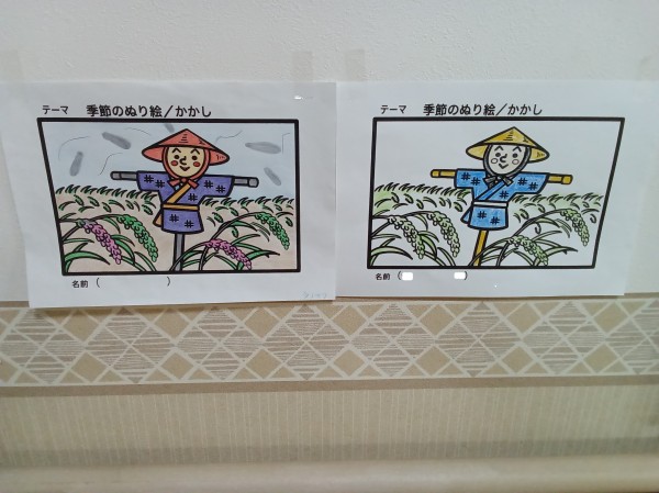 塗り絵も完成し、秋の風景がたくさんみられます (^0^)