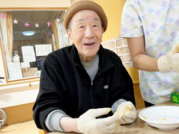 グループホームみんなの家大宮三橋 3階10月おやつレク~皮も美味しいから捨てません♪エコで美味しい『皮付きカボチャ餅』