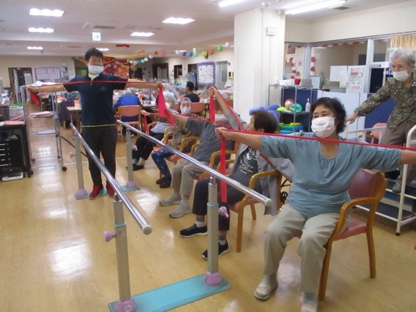 本日はボールとセラバンドを使った機能訓練の様子をご紹介いたします。