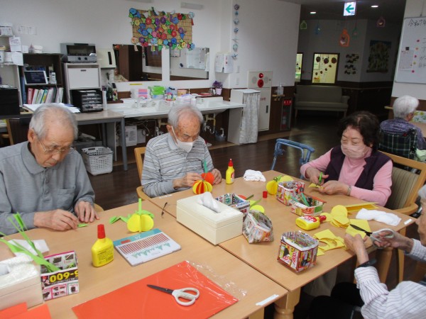 画用紙を切るところから、のりで貼って完成させるところまで、すべて利用者様にお任せして作っていただきました。みなさん協力しながら楽しんで作っていました(^^♪