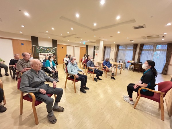 アミカの郷ちとせでは、毎週木曜日にまごころベルさんのご協力で、理学療法士の先生による個別指導と集団体操が行われています。