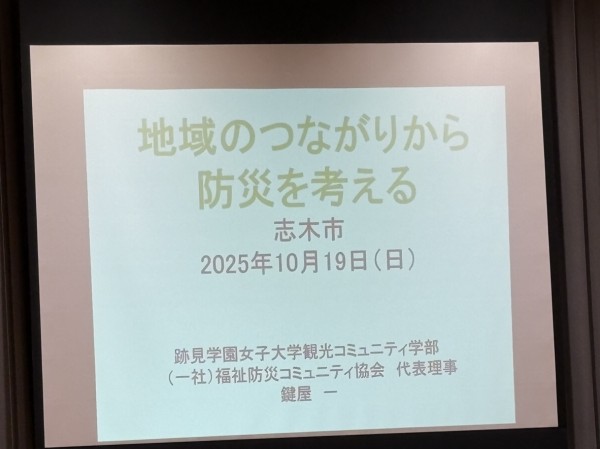 午後は跡見学園女子大学 環境コミュニティー学部 鍵屋一先生に「地域のつながりから防災を考える」をテーマに話をしていただきました。