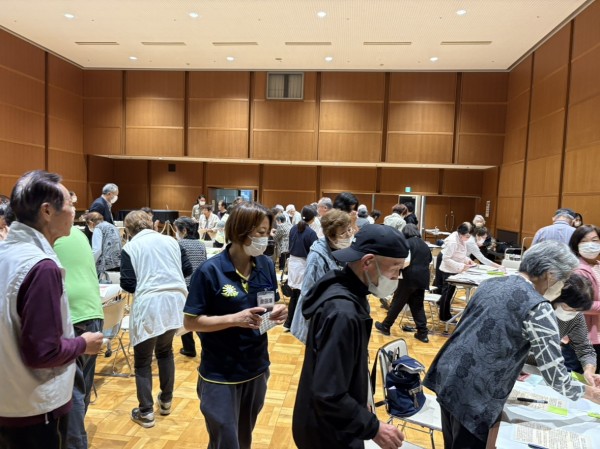 食後は自由時間。志木カーレットの方々によるカーレット体験、むねおか元気会メンバーによる介護相談、施設紹介、志木市防災危機管理課