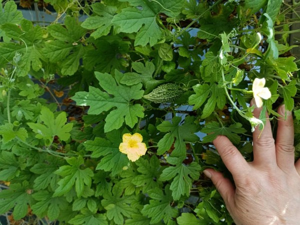 ゴーヤも時期外れになってしまいましたが、まだまだ可愛らしい実をたくさん付けています。こんな野菜たちを見ていると、ついエールを送りたくなりますね。