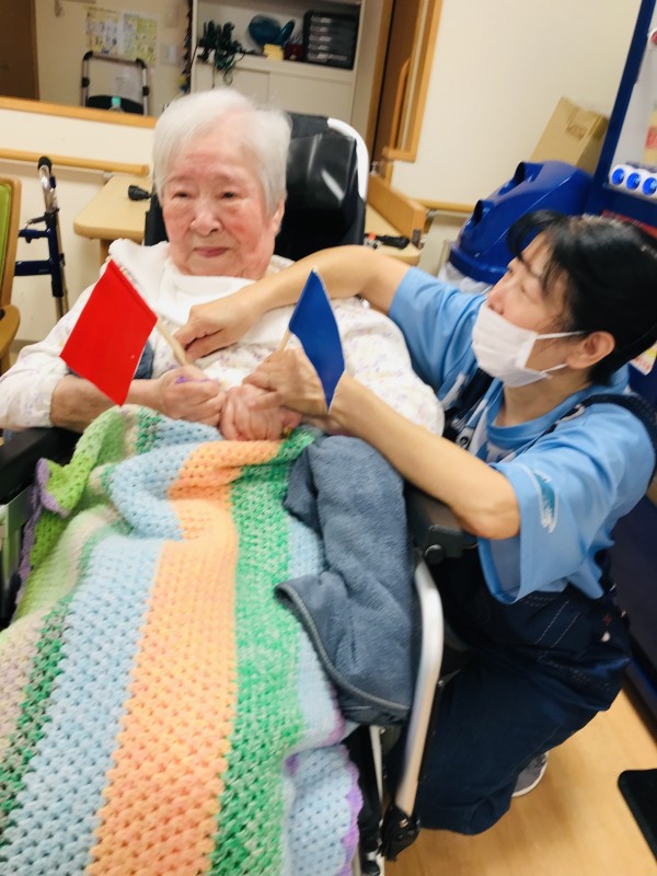「風船バレー」「玉入れ」「赤青旗上げ」「フォークダンス」とさまざまなプログラムにご参加くださいました♪(๑ᴖ◡ᴖ๑)♪