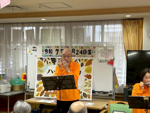 楽しいおしゃべりや脳トレなどを取り入れながらのハーモニカ演奏会はあっという間に時間が過ぎていきます!