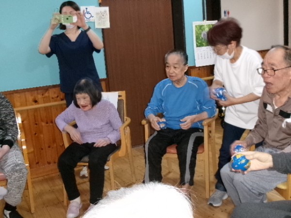 狙いを定めて、皆さま上手に玉入れ成功!