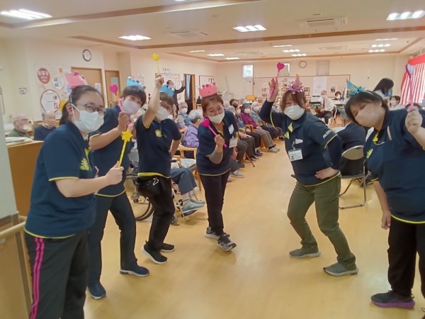 職員も参加し、カチューシャなどを付け、ピンクレディーのUFOを踊りました( *´艸`)