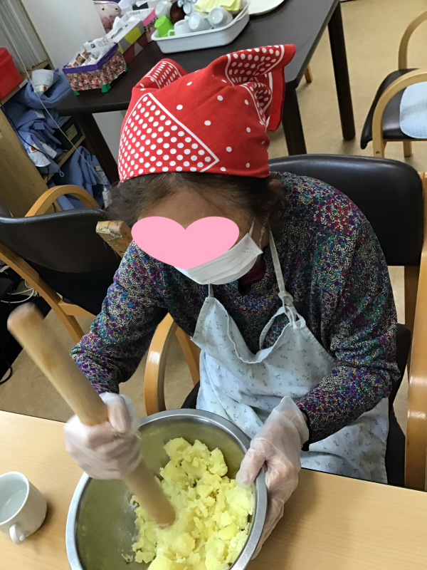 なんと☆見学に来て下さった方がポテトサラダのジャガイモを潰して下さいました(*^^*)
