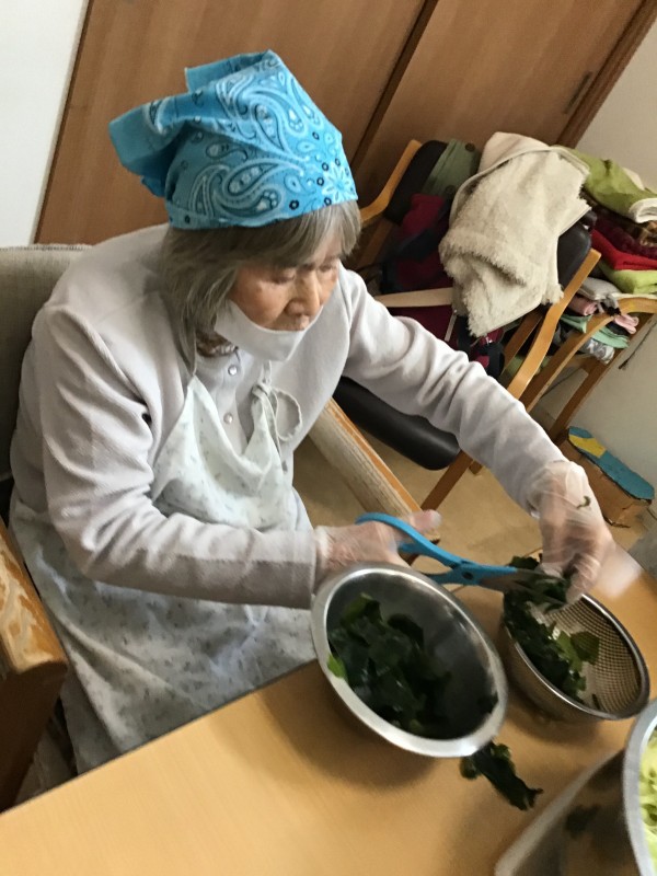 ポテトサラダの具材を切っていただいたり、酢の物に使うワカメも水で戻した後に食べやすい大きさにハサミで切って下さいます。