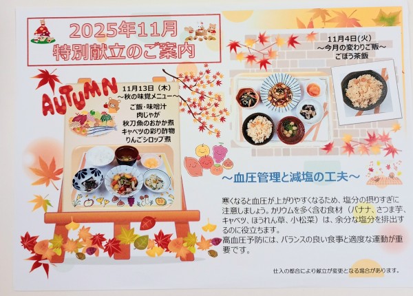 今日は季節を感じる特別献立のお知らせです。