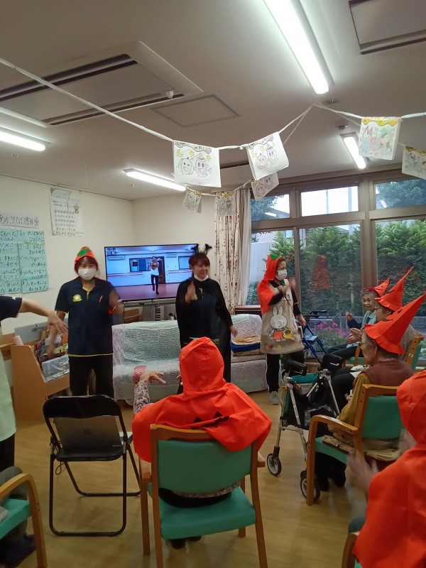 利用者様には、なじみのない行事のためハロウィンの説明をさせていただきました。
