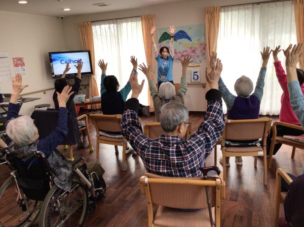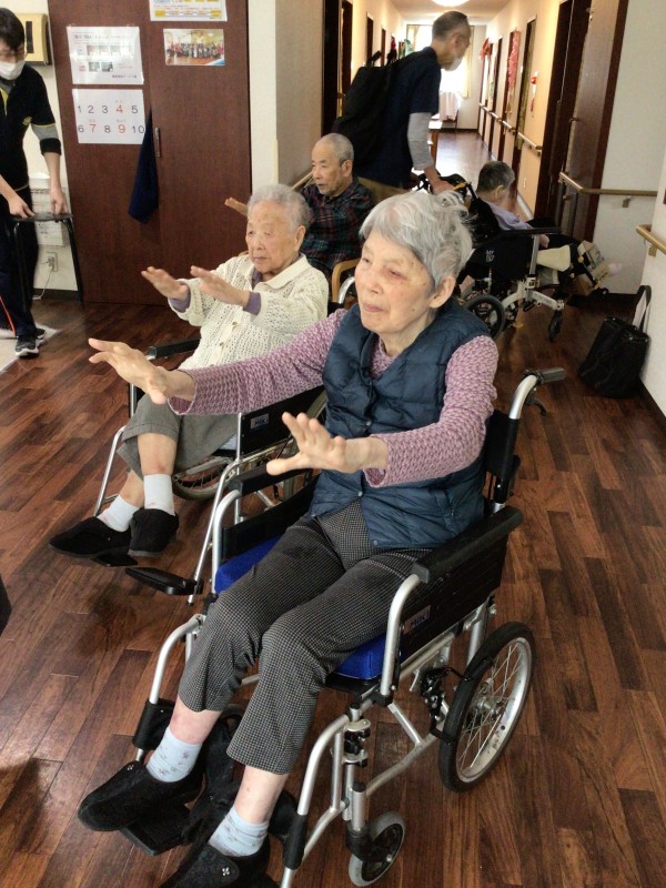いつもはリモートで画面の先生による体操教室でしたが、今回は実際に佐倉先生がホームに来られて目の前でご指導頂けました!