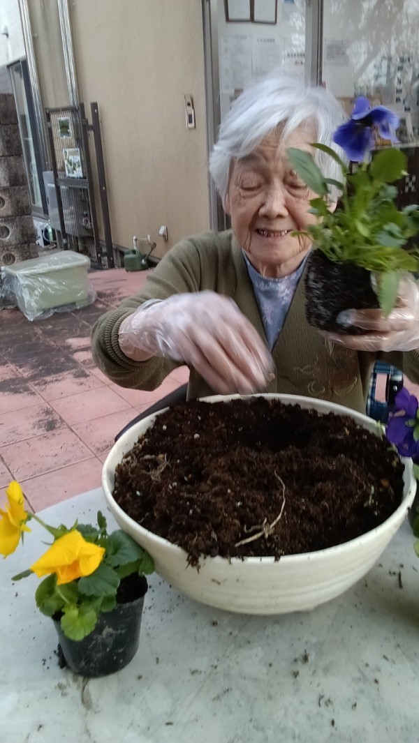 みんなでパンジーのお花を植えました