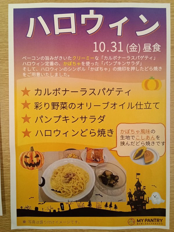 昼食には、ハロウィンランチをご提供いたしました☆彡 が、皆様が召し上がっているご様子のお写真を撮り忘れました…