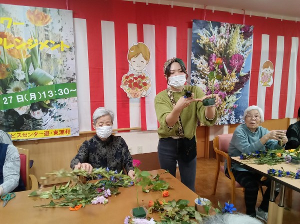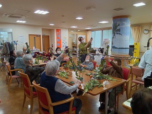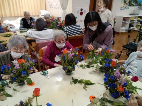 今回はフラワーアレンジメントのご様子と、フラワーに参加して下さった方々へお茶とお菓子をご提供致しました(`・ω・´)!