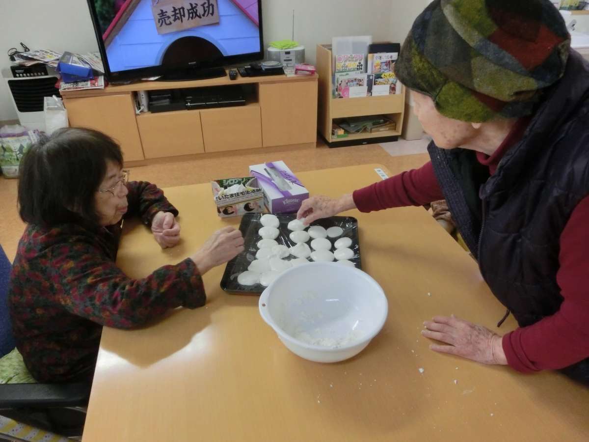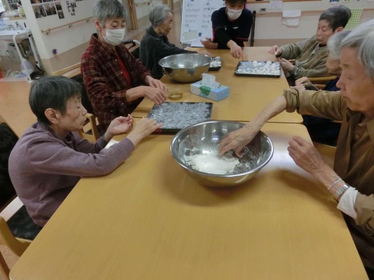 介護付有料老人ホーム みんなの家・東浦和3の入居者様に白玉作りをお願いしたところ、特に女性陣は奮って参加され、綺麗なお団子をたくさん作って頂けました♪