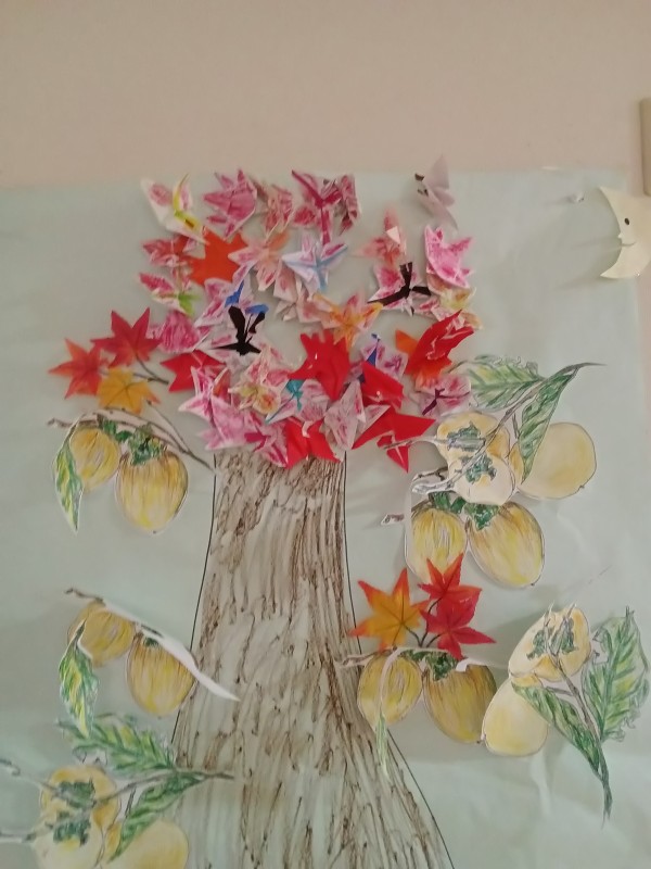 今月は紅葉の時期なので紅葉を折り紙で