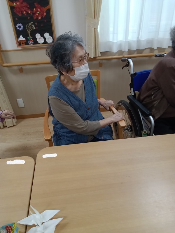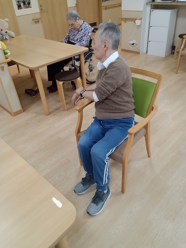 本日はリモート体操の日。こちらは一階の皆様の「腸活トレーニング」の様子です。