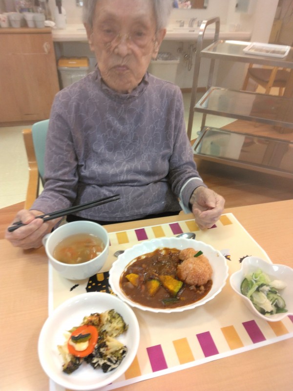 パンプキンカレーのライスはなんとかぼちゃの形(^^♪