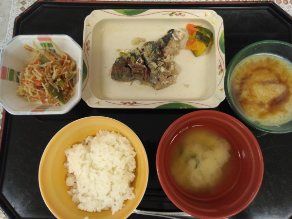 「あじの香味焼き」「ビーフン炒め」「黒ごまきなこフルーチェ」です♪