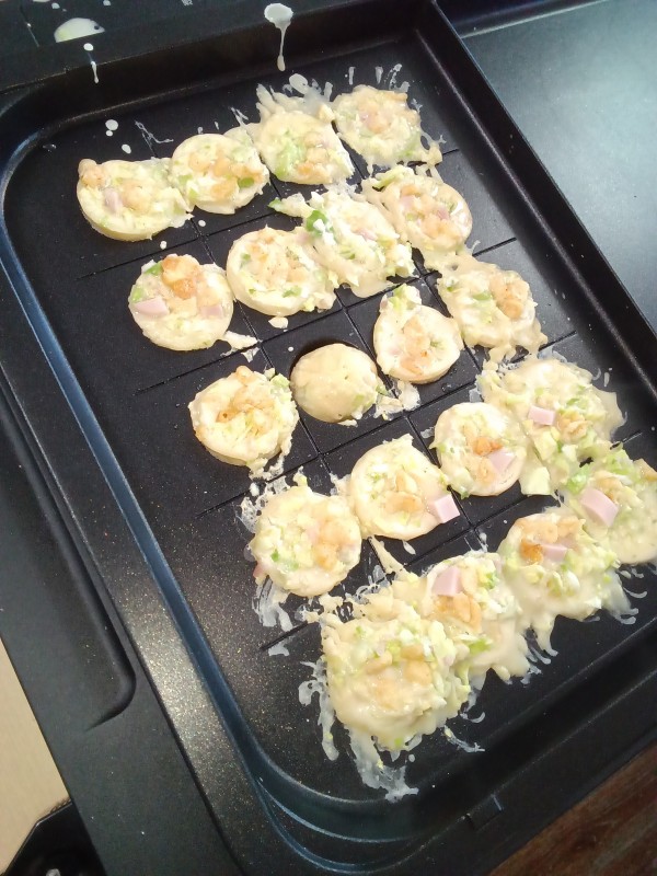 本日は毎回皆さんお楽しみの手作りおやつでした。今回はタコ焼きを2種類チーズ入りと魚肉ソーセージいりを用意しました。
