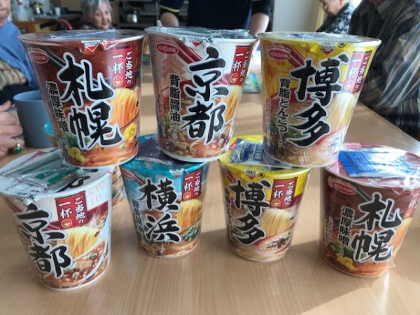 用意したカップ麺は札幌ラーメン(味噌)、京都(背油醤油)、横浜(豚骨醤油)、博多(背油とんこつ)の計4種類。