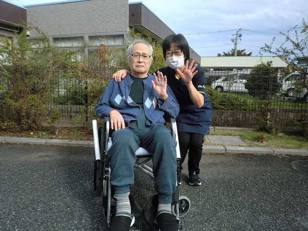 久々に天気がよかったので施設の外で外気浴をしました。