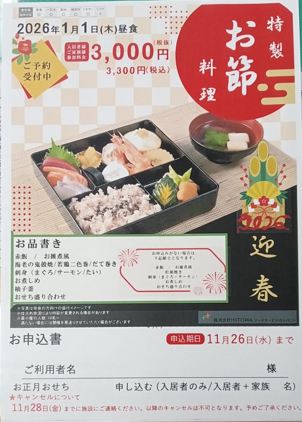 12月と来年1月の特別食が決まりました!