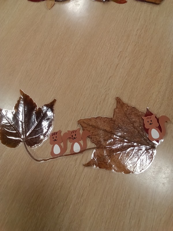 葉っぱを並べたり 円をかいてリースにしたり・・