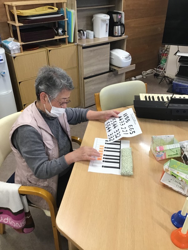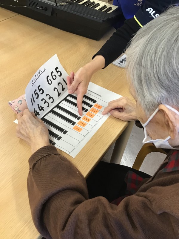 午後のレクリエーションで音楽レクを行いました。簡単に説明いたします。