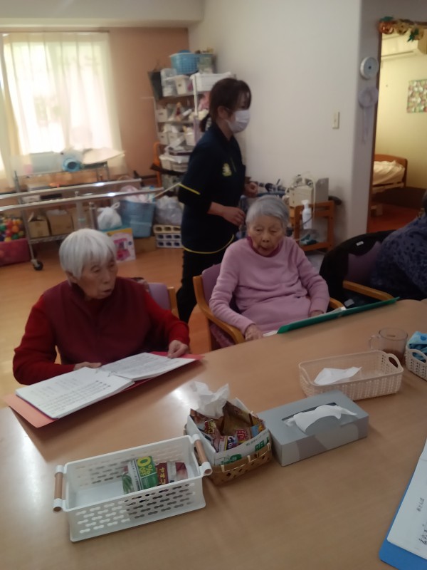 今日は、歌のボランティアさんがお休みだったので、皆で歌う歌を決めてから