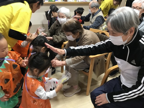 お菓子を配った後は、園児による「おもちゃのチャチャチャ」をちょっとアレンジした、「かぼちゃのチャチャチャ」のお披露目がありました♪