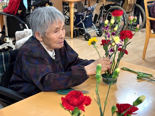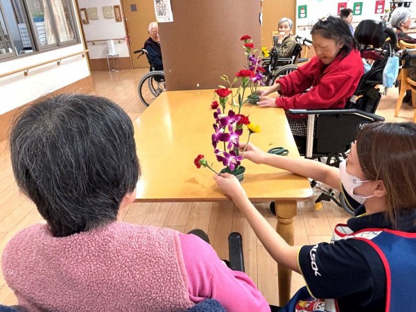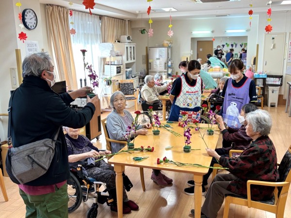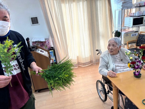 先日有償サービスで南中丸では初めてのフラワーアレンジメント教室が開催!