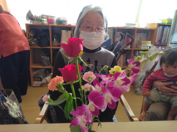 男性の利用者様もアレンジメントを楽しまれておりました!
