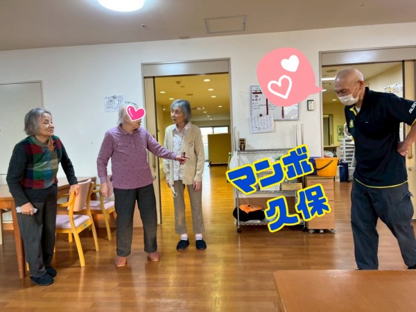 ご入居者様と一緒にマンボを踊れる久保さんが1番楽しんでいた