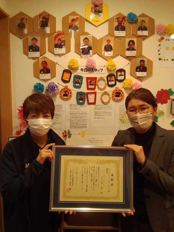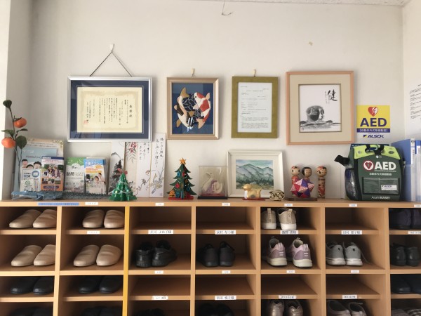 職員紹介ボードにおいて、当日勤務の職員が掲示されている点や下駄箱上にご家族様の作品が飾れていて暖かさを感じるという高評価を頂き、