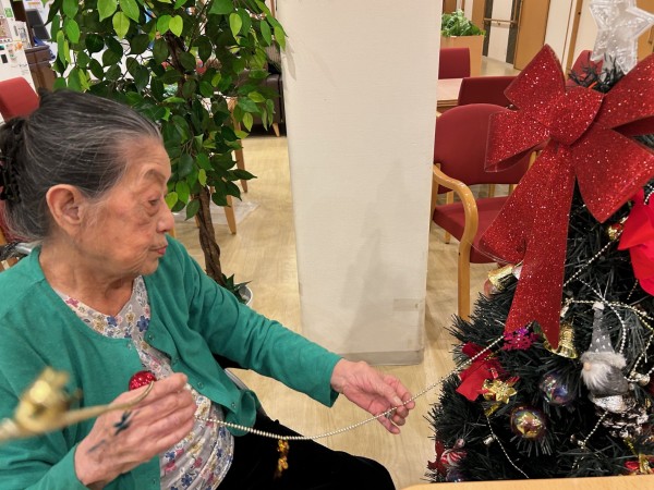 ツリーの飾り付けは、ご入居者の皆さまと一緒に行いました。