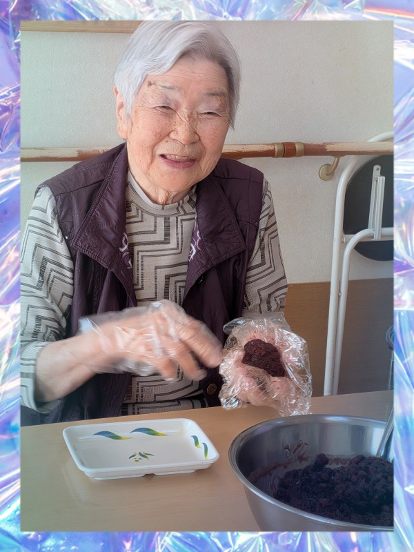 おはぎはご自身で形を整えて粉をトッピングしていただきました。