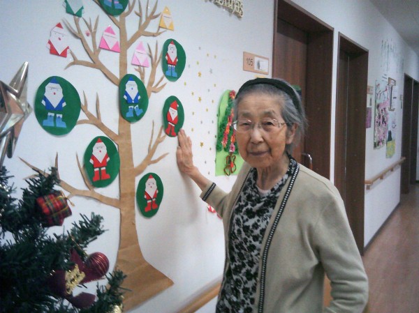 折り紙で作ったサンタクロース????を壁に貼っています( ^ω^)・・・ これまた綺麗だこと!とニッコリでした(*^_^*)
