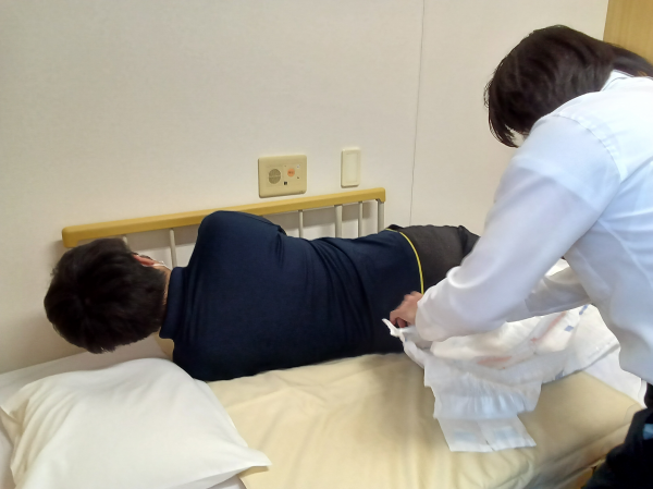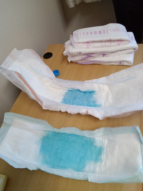 モデルに対して用意していたオムツが小さかったため、テープの位置がギリギリですが・・・(;^ω^)