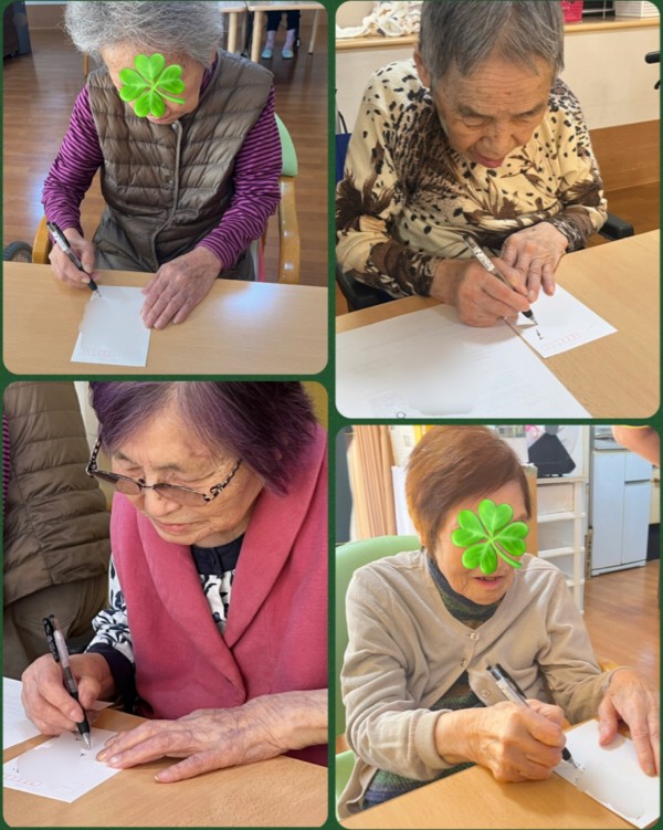 この日の工作レクは、季節の草花を使った押し花ハガキ制作を行いました