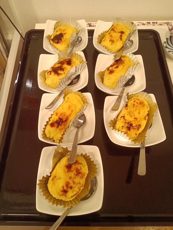 皆様に形を整えていただいたお芋の表面に卵黄を塗って焼いたら…
