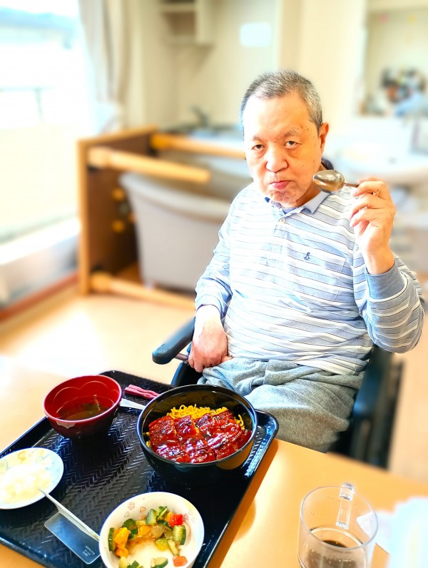 ★☆三橋6丁目の昼食•鰻ウナギうな丼♬イベント食‼特別メニュー丑の日②階♬鈴木勝也ホーム長!舌鼓大絶賛2025年令和7年✨ 『みんなの家 三橋6丁目 介護ブログ』☆★