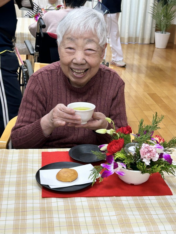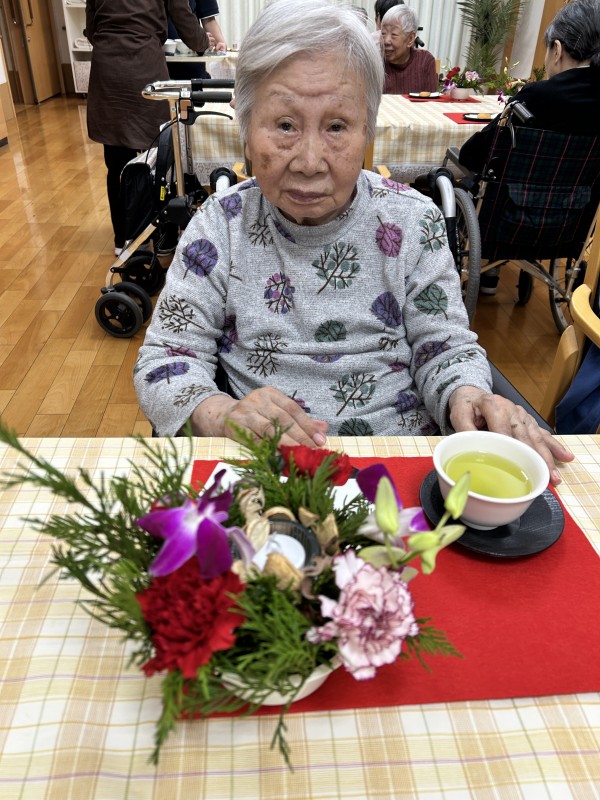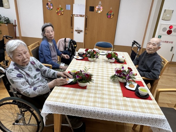 完成したアレンジのお花を見ながらのお茶タイム