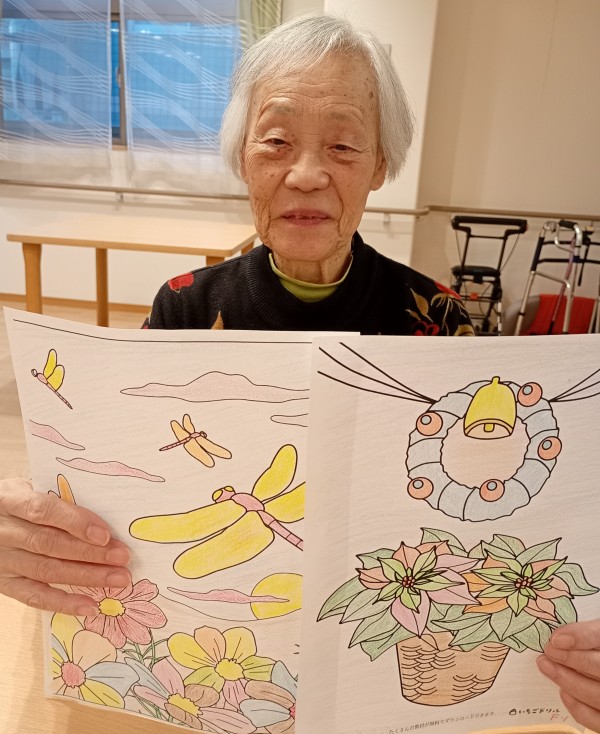 M様編み物に夢中です。とっても器用に編んでいらっしゃいました。